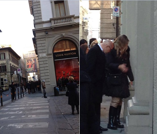 Eles param em frente à Louis Vuitton, na Piazza degli Strozzi. Estão no coração da cidade. A algumas quadras está o Duomo, a alguns outros a Basílica de Santa Maria Novella. Stendhal teve uma síncope diante da beleza florentina, da herança do Renascimento pelas ruas, e escreveu um ensaio sobre isso. Os sintomas ficaram conhecidos como “Síndrome de Stendhal”.