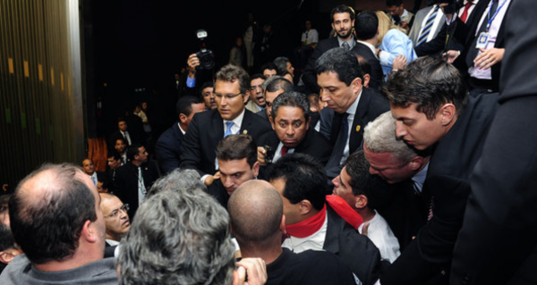 O autor das críticas, reproduzidas na página da presidente da República, é o senador Lindbergh Farias (PT-RJ). No vídeo, ele diz que a confusão responsável pela interrupção da sessão do Congresso que deveria analisar o projeto foi causada por “um grupo de, no máximo, 30 manifestantes ligados ao PSDB, com discurso de extrema direita”. O senador ainda atribui ao grupo ofensas à senadora governista Vanessa Grazziotin (PC do B-AM).