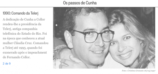 A reportagem saiu. Cunha travou com o jornalista um diálogo pesado ao telefone. E o levou à Justiça. Perdeu, porque nada havia ali que configurasse difamação ou injúria. Apenas fatos.”