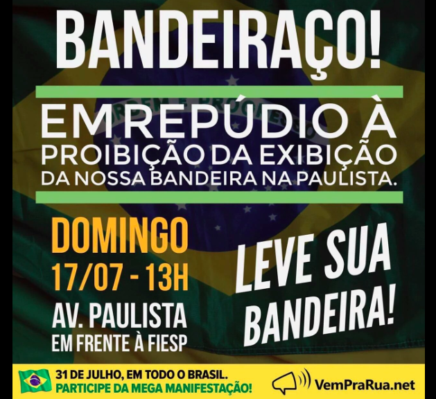 A manifestação coxa marcada para o dia 31 de julho tem como bandeiras, segundo o movimento golpista Vem Pra Rua, o afastamento definitivo de Dilma, o apoio à Lava Jato e a “prisão de políticos corruptos”.