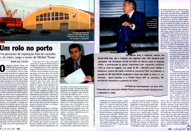 Matéria sobre o caso na Veja do tempo em que Temer era “inimigo”