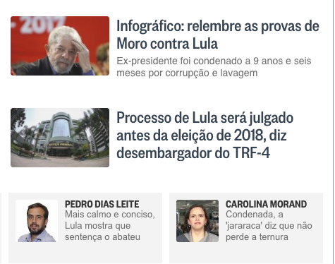 “Uma grande parcela do seu eleitorado ele perdeu para sempre. Ele sabe disso, mas o importante para Lula é ser candidato para que quanto mais perto fique do pleito, mais difícil seja para o tribunal de segunda instância condená-lo. É uma corrida contra o tempo, que será atravessada em um período de aumento da tensão política no país”, escreveu.