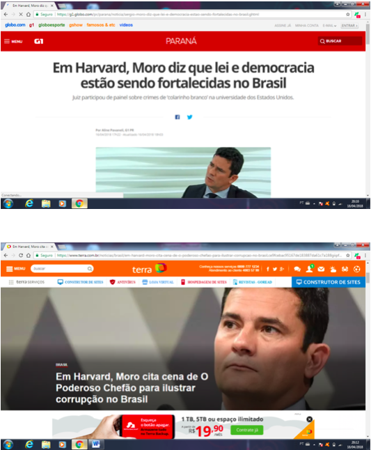 “Em Harvard, Moro diz que lei e democracia estão sendo fortalecidas”, estava no G1 da Globo; “Em Harvard, Moro cita O Poderoso Chefão”, na manchete do Uol, e foi esse o diapasão na grande mídia a respeito do evento desta última segunda-feira.
