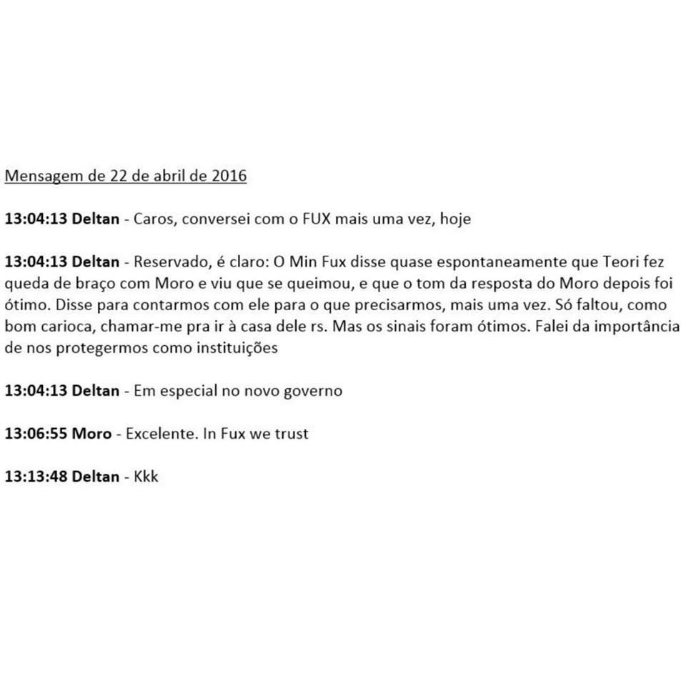 O diálogo em que Deltan Dallagnol relata sua conversa com o ministro do STF, Luiz Fux, amplia o que até agora restava comprovado como uma já escandalosa associação entre um magistrado de piso e procuradores federais.